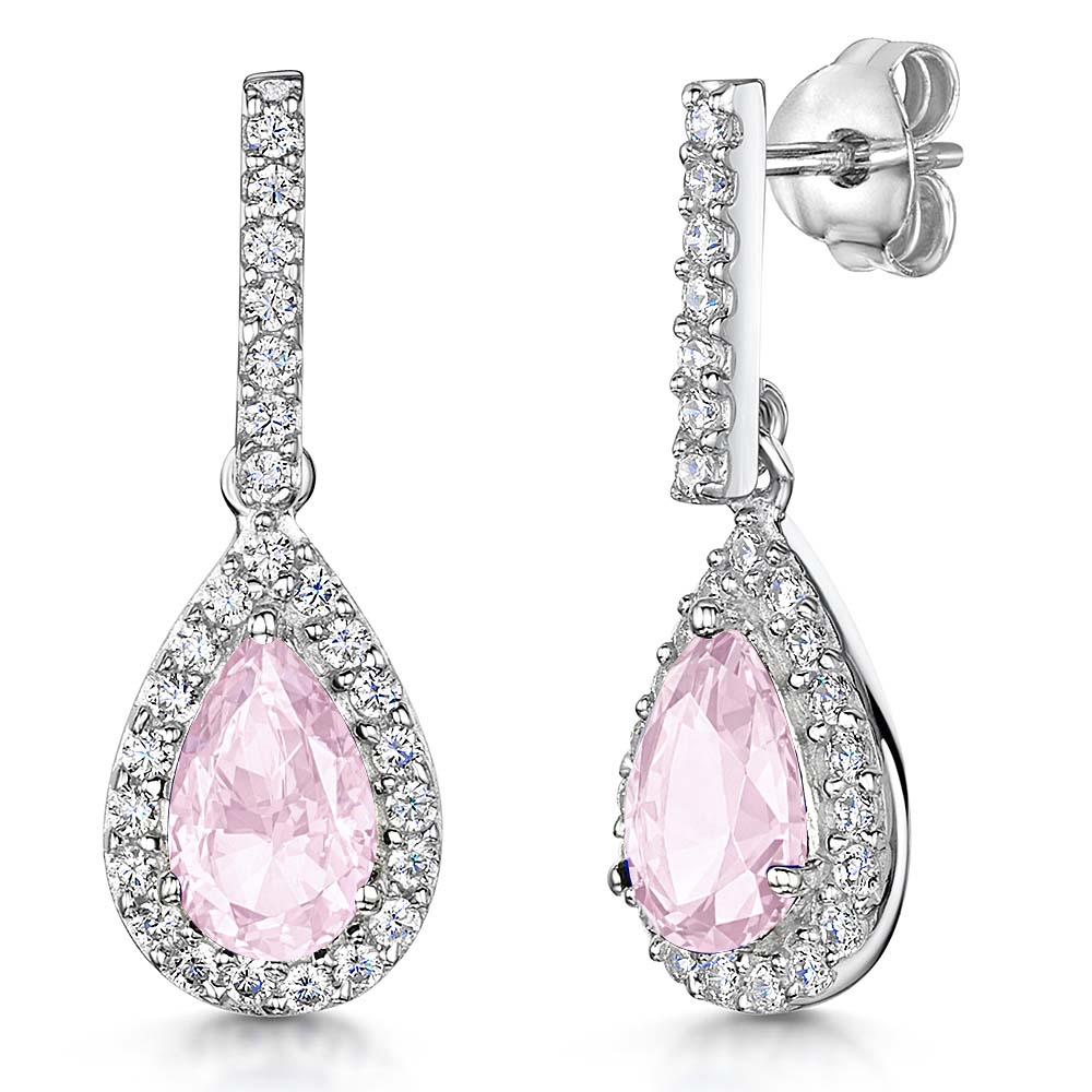 Sterling Silver and Cubic Zirconia Suspended Teardrop Earrings .5X8 mm Diameter 23 mm Long. The Finest AAA Cubic Zirconia Stones. 925 Sterling Silver- Hypoallergenic. Rhodium Finished- Tarnish Free