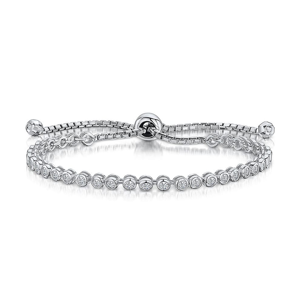 silver and cz rubover ‘friendship’ style bracelet with adjustable fastener