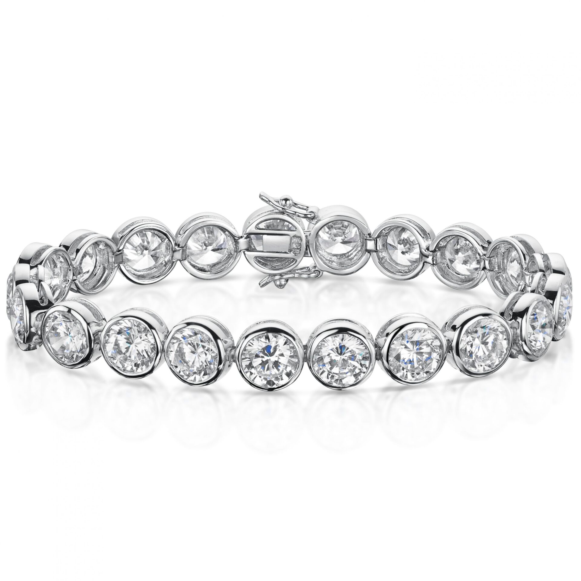 Sterling Silver Bracelet With 7mm Rubover Cubic Zirconia’s. 18.25cm Long, Snap Fastening. The Finest AAA Grade Cubic Zirconia Stones. 925 Silver – Hypoallergenic , Rhodium Finished For Tarnish Free Wear.