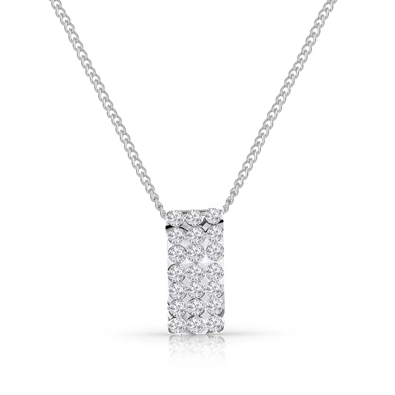 Polished Silver Rectangle Pendant Set With Round Cubic Zirconias. 20x10mm Overall Diameter Rhodium Finished Sterling Silver & AAA Quality Cubic Zirconias. Supplied on a 16-18inch Adjustable Chain.